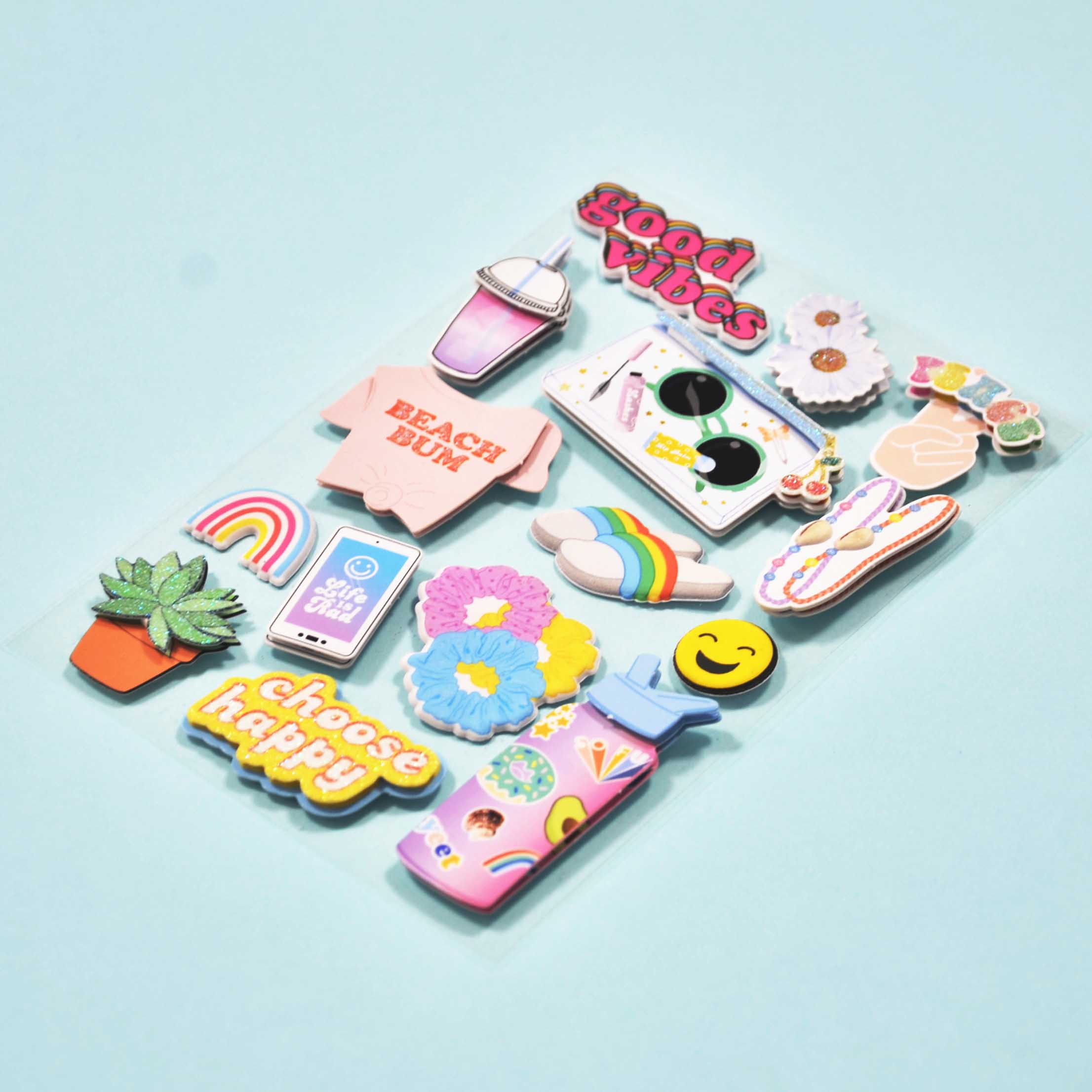 Happy Music Vibes Puffy Ang Glitter Design Handmade Colourful Stickers